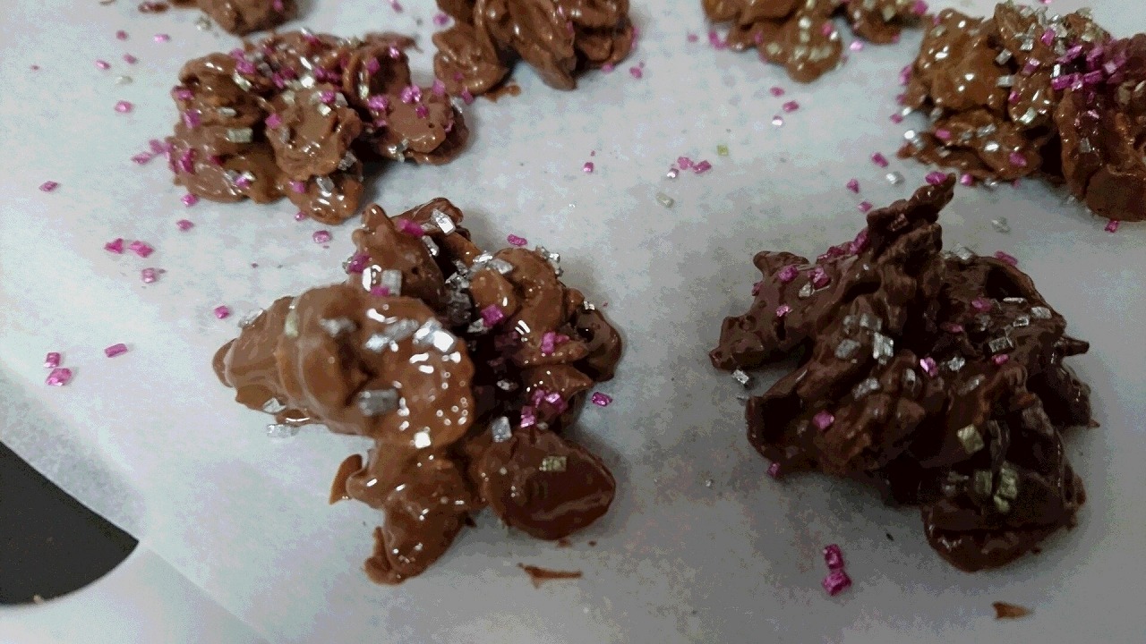 作ったと言っても、ガーナミルクチョコを溶かしてナッツやシリアルと混ぜただけ ^m^