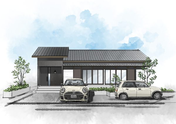焼杉と漆喰のコントラストが美しい、落ち着いた佇まいの平屋のリノベーションモデルが高知市福井東町に完成しました。
