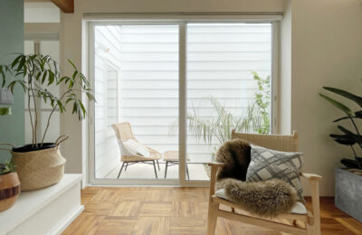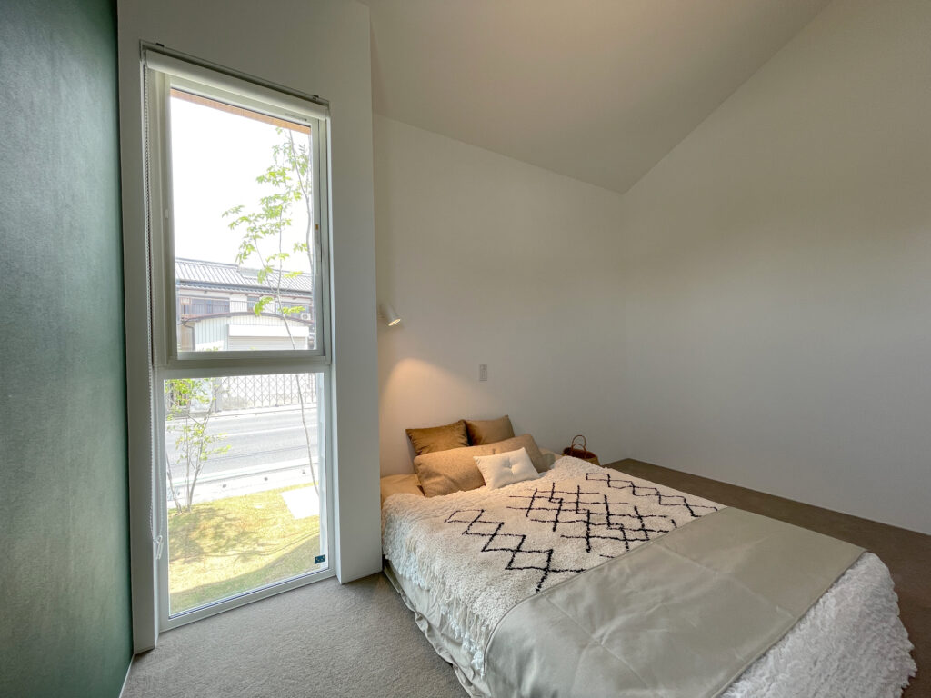 内と外のつながりを意識して計画したリビング空間。開口部の配置や天井の高さ、素材のトーンを抑えることで、視線が自然と奥へ抜け、実際以上の広がりを感じられます。落ち着いたインテリアと相まって、時間の流れまで穏やかに感じられる居場所に仕上げました。