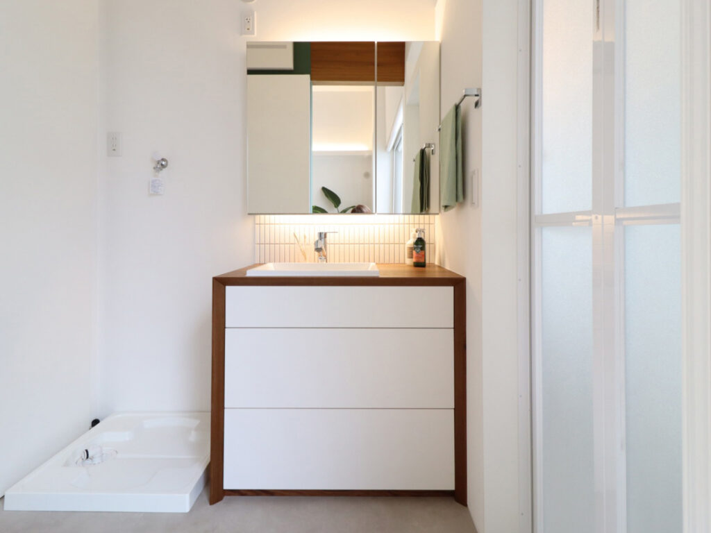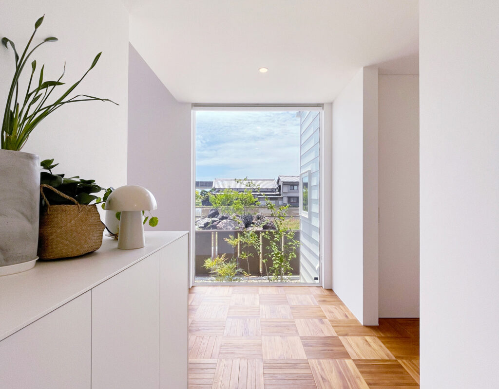 白い外壁に囲まれたテラスは、外からの視線を気にせず過ごせる特別なプライベートスペース。読書を楽しんだり、朝のコーヒーを味わったり、暮らしの中に小さなリゾート時間を添えてくれる場所です。