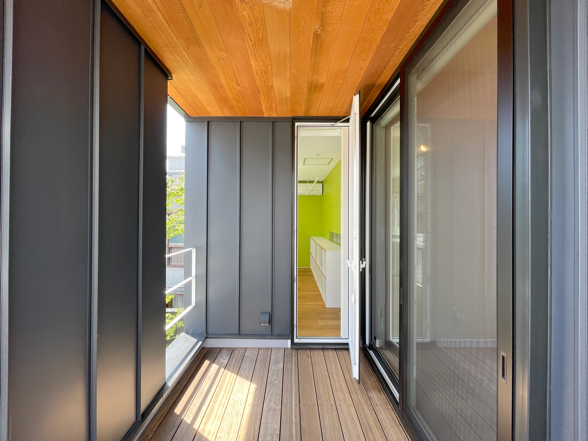 窓の向こうは、視線が抜ける中庭を。リビングからもキッチンからでも癒される眺め。視線から解放されたプライベートな外空間が、日常にゆとりをもたらします。中庭から駐車場へも直行できる動線で日々の動線まで便利に。