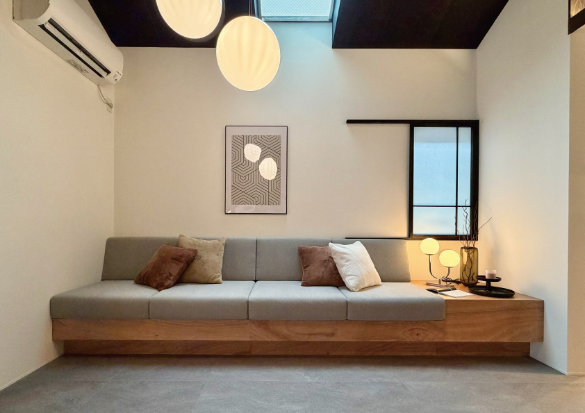 そんな重厚な雰囲気の室内に、現代のライフスタイルに合わせたモダンでレトロな家具たち。