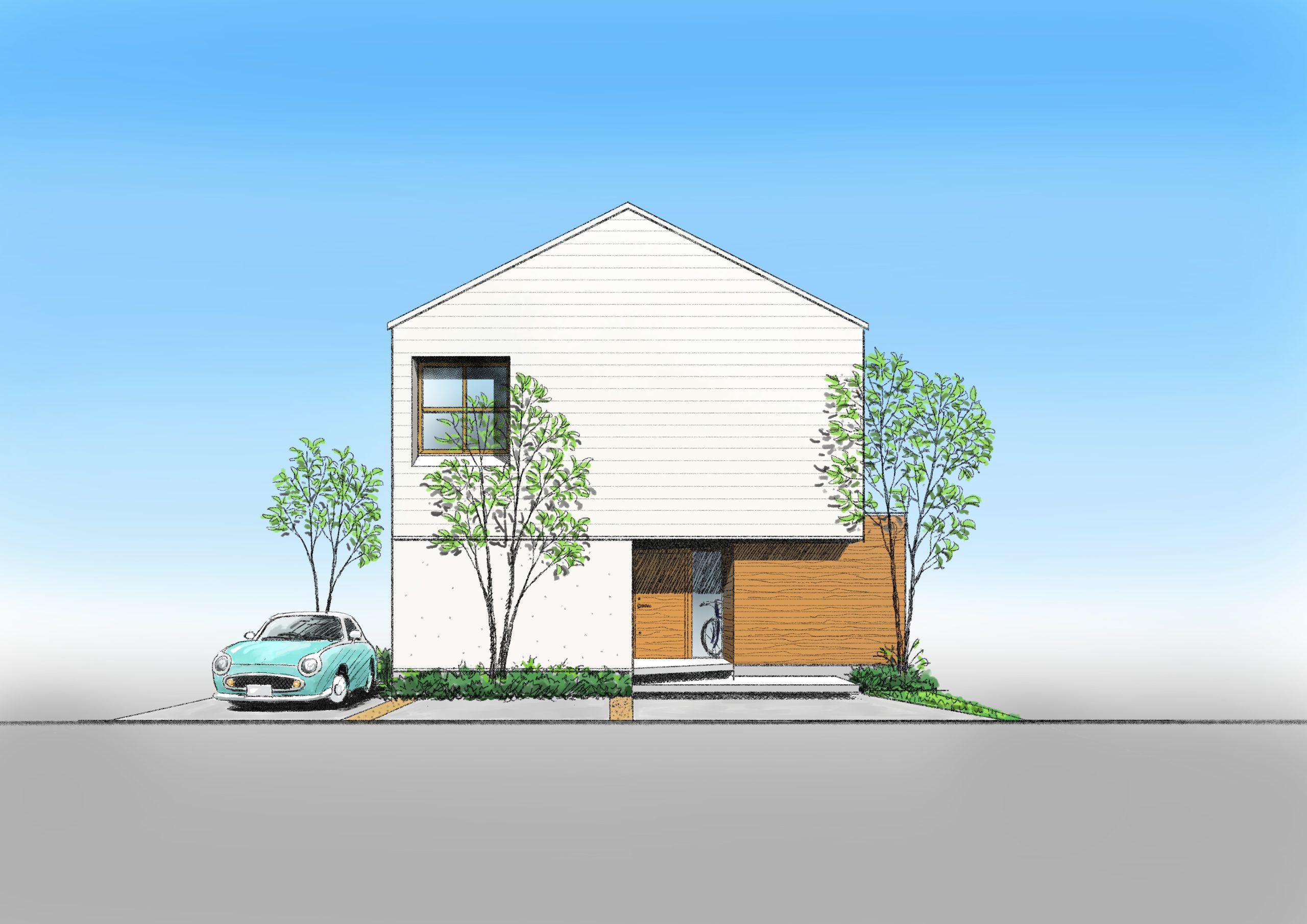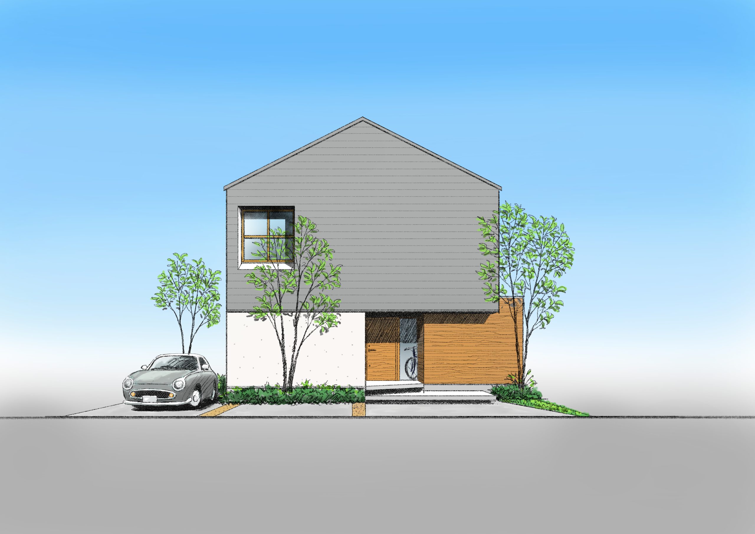 三角屋根のシンプルな切妻屋根は、街中や山、海、川にいたるまで、様々な風景に溶け込むデザイン。